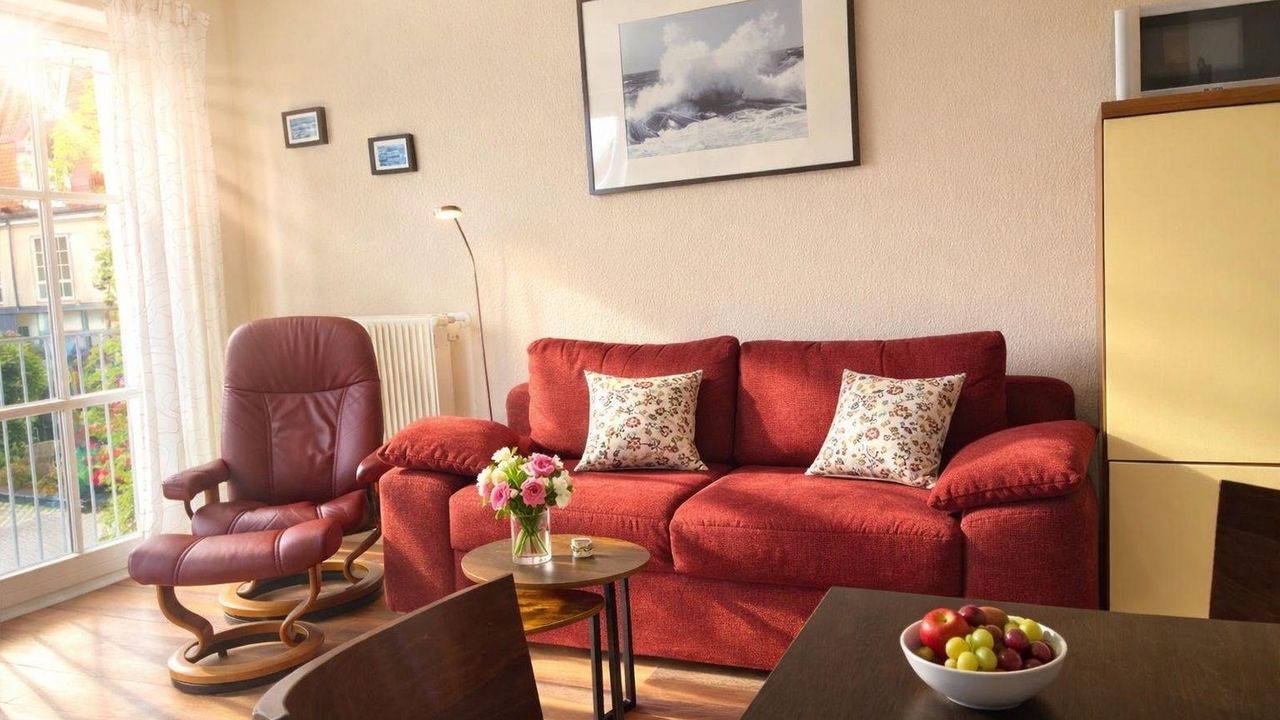 Die helle 2-Zimmer-Wohnung für bis zu 3 Personen besticht durch Ihre großen Fenster und den besonderen Lichteinfall, der ein behagliches Ambiente schafft.