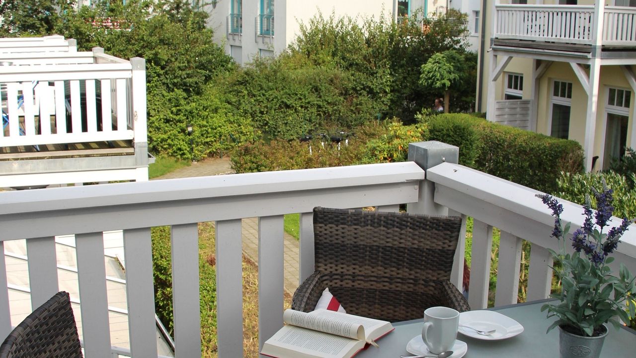 Bei schönem Wetter verlegen Sie Ihren Aufenthalt einfach ins Freie! Der große Balkon im Bäderstil mit Tisch und Sitzgelegenheiten inkl. Auflagen und einem Sonnenschirm, bietet ein tolles Ambiente, im Freien zu speisen, Kaffee zu trinken oder abends ein Glas Wein zu genießen.